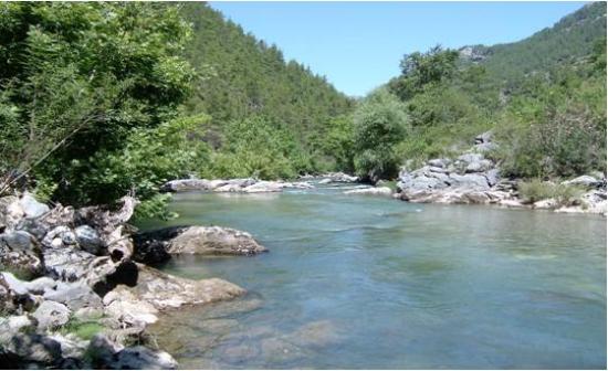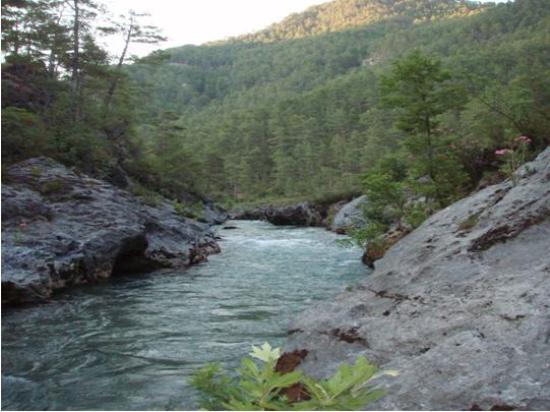 The streams of the Mediterranean have an excellent character for fly fishing. The streams flow out from the rocky cliffs of the Taurus Mountains into valleys where they drain to the Mediterranean sea. The flow rate is very high and trout habitat lasts for kilometers, with streams flowing through steep pine-forested valleys, providing an idyllic setting for fly fishing. Some of the rivers are ;Manavgat, Aksu , Alakır , Köprüçay and Dim streams. These are fascinating trout destinations but not all are inhabited exclusively by native trout any longer. The Aksu river has a flow rate of 1343 hm3/year and the Köprü River 555 hm3/year.
