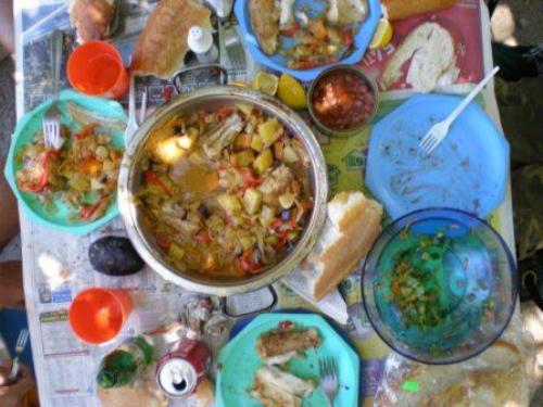 Tam yemek faslına başlamıştık ki, başka bir botta avlanan iki arkadaş bize dahil oldu ve hoş sohbet muhabbet başladı. Sağolsunlar Turna güveç yapmışlardı ve hiç tereddütsüz masamızın ortasına yerleştirdiler.